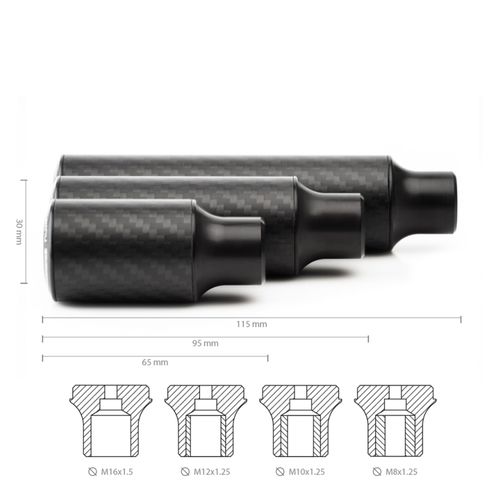 The Cavernous series universal gear knobs are made out of real carbon and come in two finishes, both matte and glossy. Both sizes are as lightweight and stable as the other, it is totally up to you to choose which finish matches your interior the best. It comes in three different lengths to fit all applications as best as possible, the different sizes are 65mm (40mm carbon), 95mm (70mm carbon), and 115mm (100mm carbon). Choose the length and finish when placing an order, all versions come with the included inserts and with our unique hollow design.