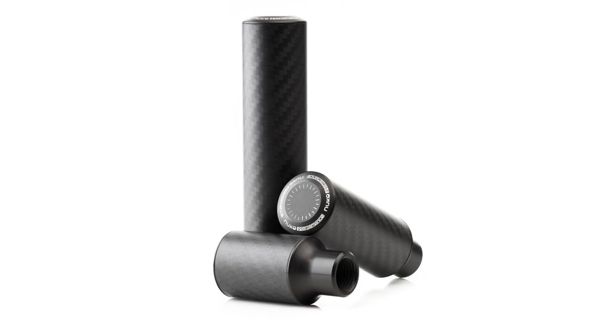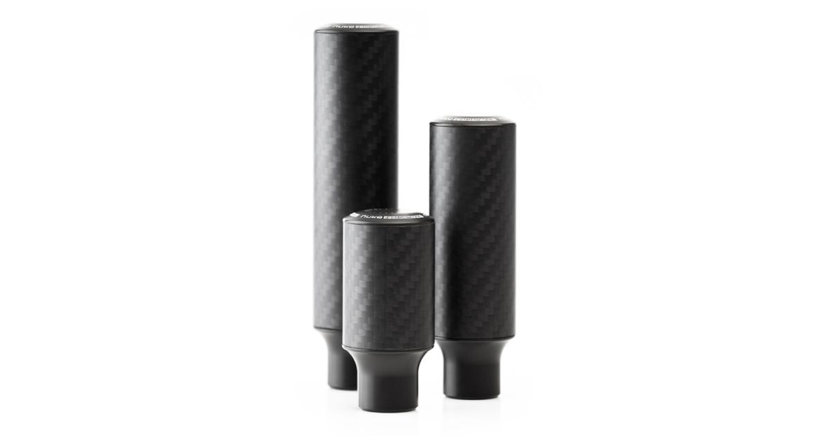The Nuke Performance universal Gear Knobs, Cavernous Carbon, comes in three lengths and two finishes. All three lengths and both finishes are made of real high-quality carbon and billet and anodized aluminum.