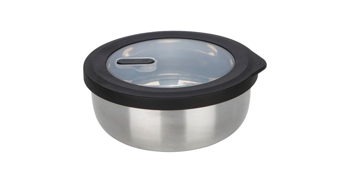This round stainless steel container helps you keep track of your food at home or on the go. The container is leakproof and keeps food fresh for a long time. The special valve in the lid makes it suitable for use in the microwave. The matching app supports you in managing your supplies digitally.