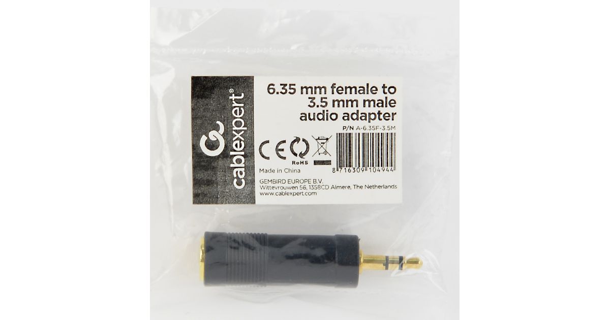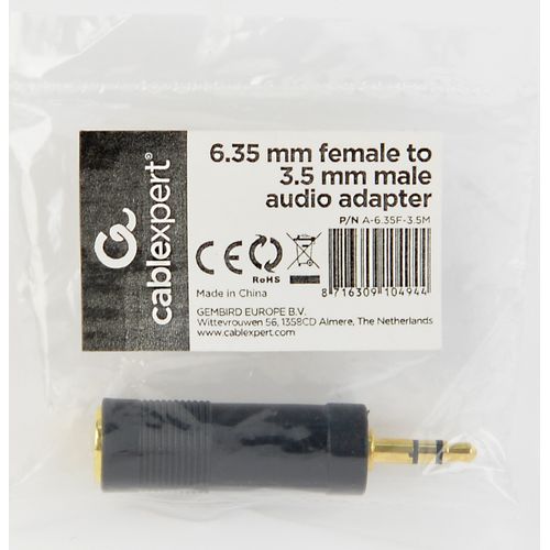 Gembird A-6.35F-3.5M, 6.35 mm, 3,5 mm, Must