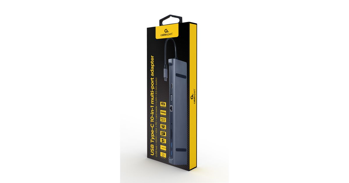 Gembird A-CM-COMBO10-01 sülearvuti dokk ja pordireplikaator Juhtmega ühendatud USB 3.2 Gen 1 (3.1 Gen 1) Type-C Hall