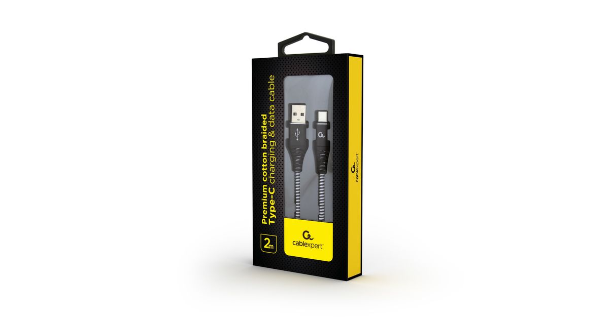 Gembird CC-USB2B-AMCM-2M-BW, 2 m, USB A, USB C, USB 2.0, 480 Mbit/s, Must, Valge