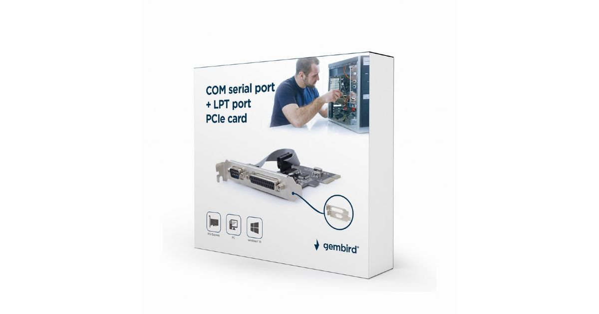 Gembird PEX-COMLPT-01, PCIe, Paralleelne, RS-232, Emane, Madal profiil, PCIe 3.0, Windows 10, Windows 7, Windows 8
