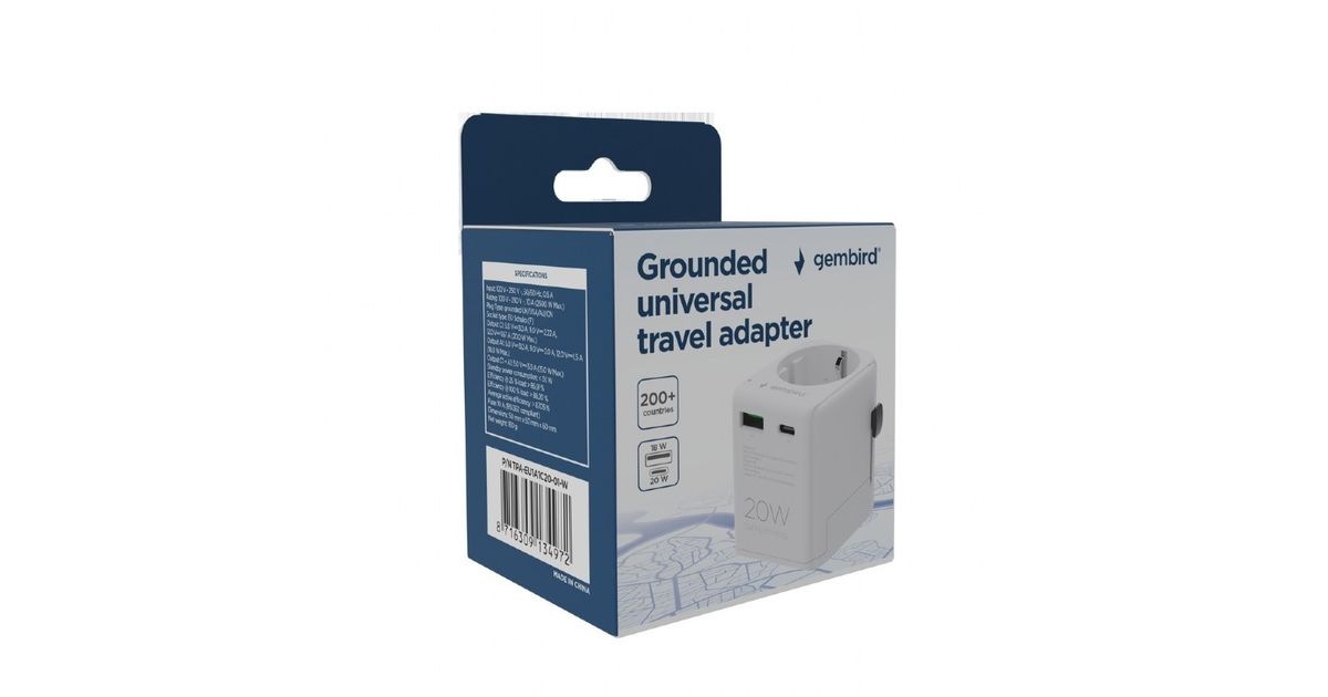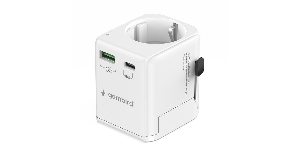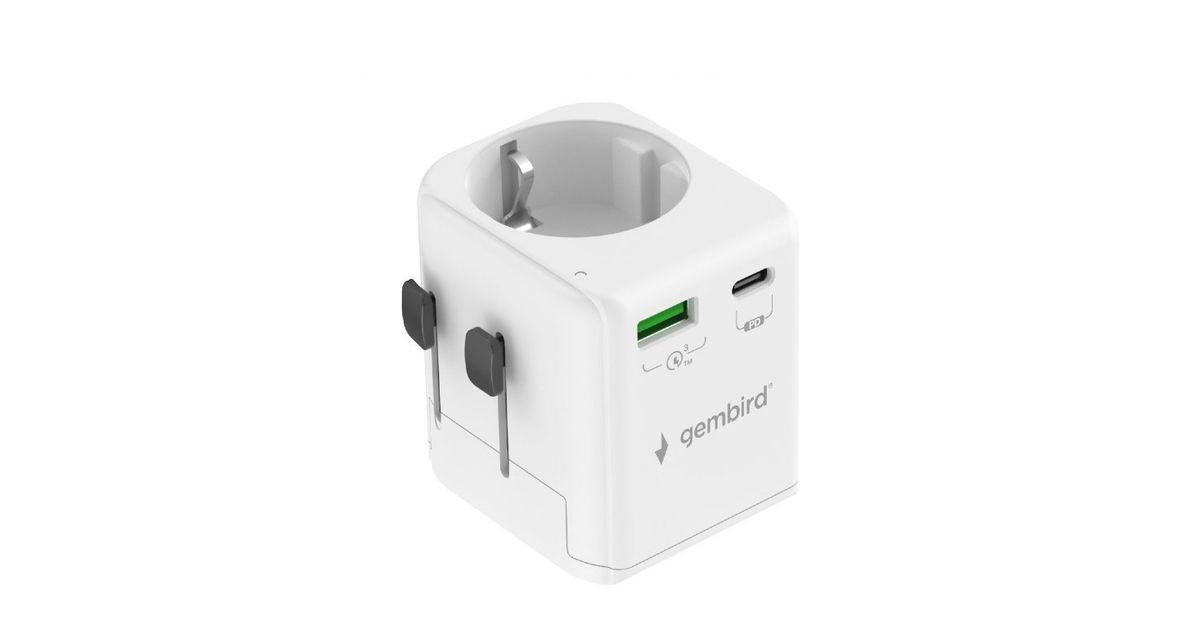 Gembird Universal reisisadapter maandusega 20W valge