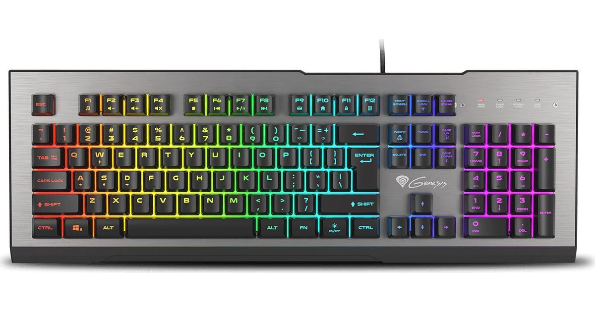 GENESIS Rhod 500 RGB, Full-size (100%), USB, Membraaniga klahvlüliti, QWERTY, RGB LED, Must, Hõbe