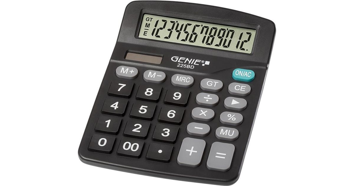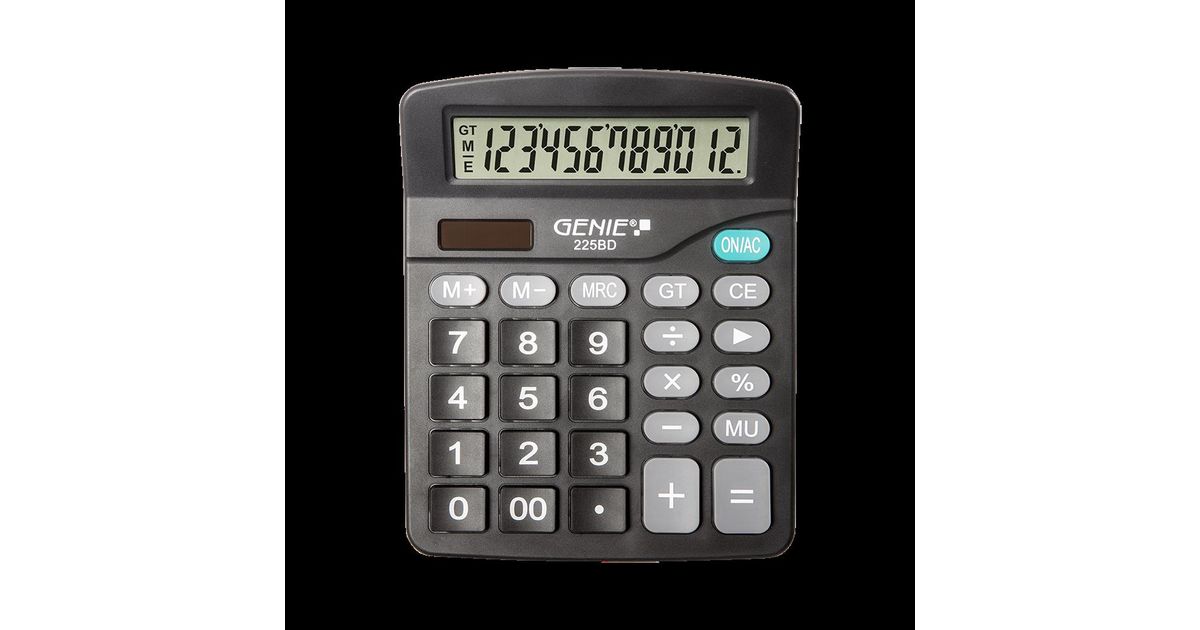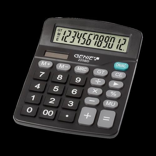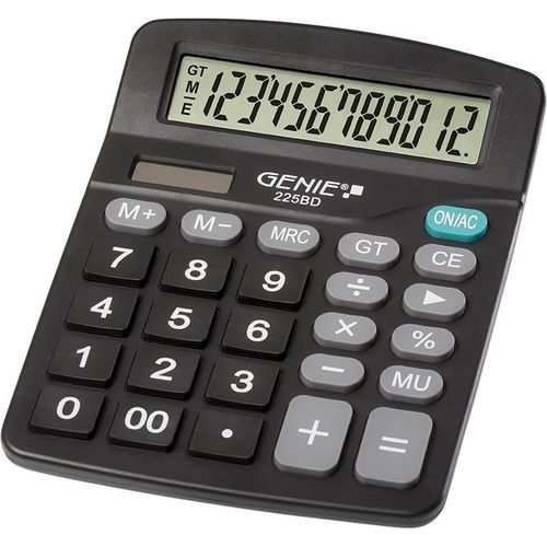 Genie 225 BD, Lauaarvuti, Tavaline kalkulaator, 12 numbrid, Kallutatav ekraan, Aku/päikesepatarei, Must