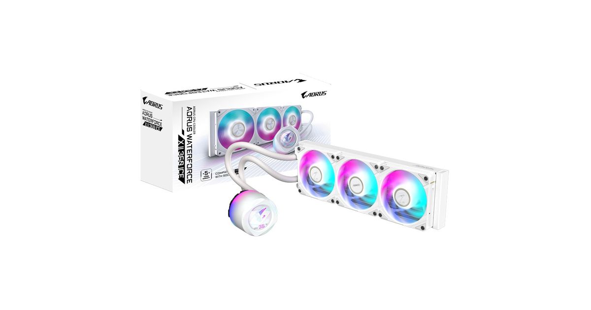 GIGABYTE AORUS WATERFORCE X II 360 ICE AIO Liquid CPU Cooler - 3x120mm ARGB Fans, full-color LCD, DAISY-CHAIN, Intel LGA 1851 and AMD AM5 Compatible - Jahutus - Protsessorid ja tarvikud - Arvutikomponendid - MT Shop