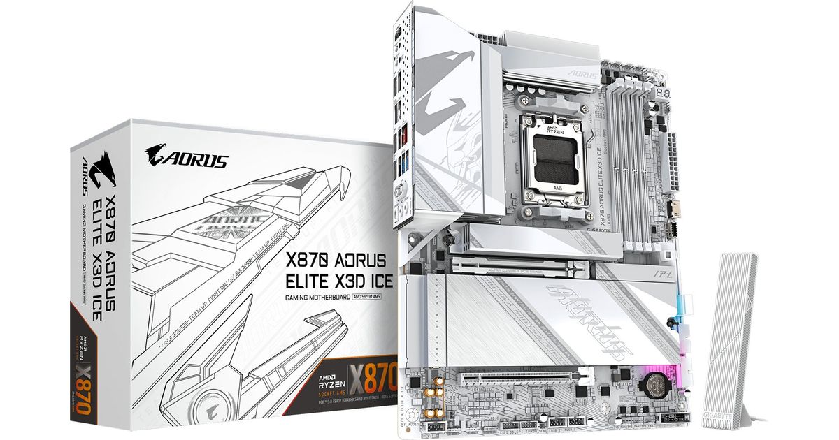 Gigabyte AORUS X870 ELITE X3D ICE - Motherboard - ATX - Socket AM5 - AMD X870 Chipsatz - USB-C 3.2 Gen 2x2, USB4, USB 3.2 Gen 1, USB 3.2 Gen 2 - 5 Gigabit Ethernet, Wi-Fi 7, Blueto