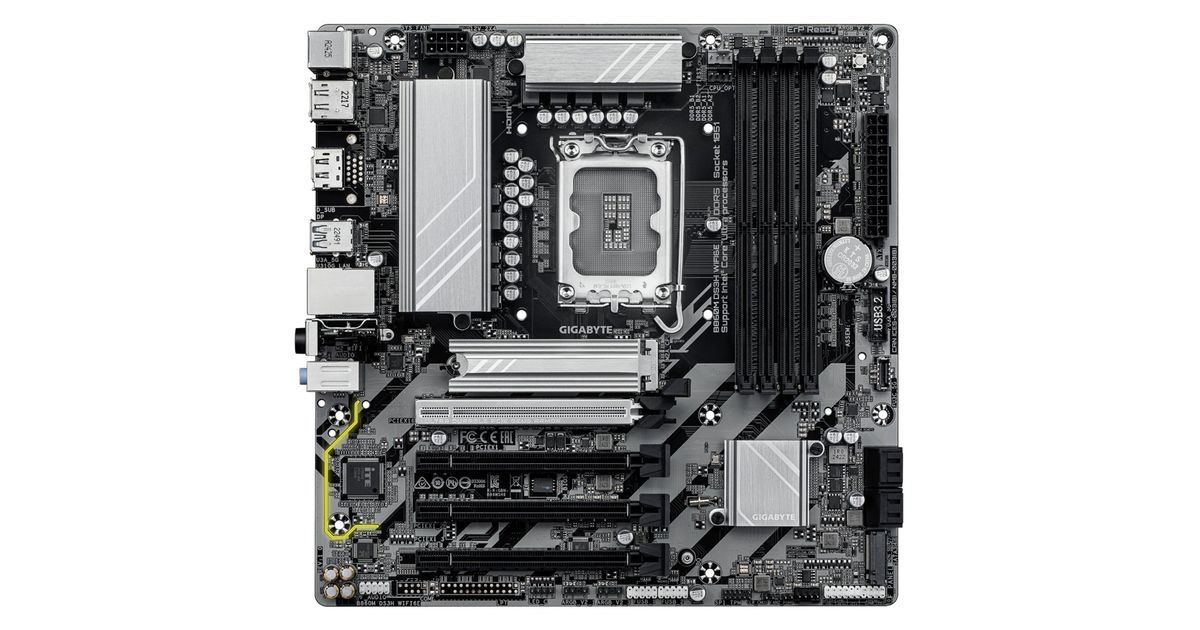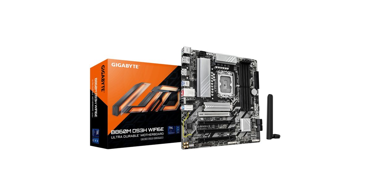 B860M DS3H WIFI6E Motherboard - Intel Core Ultra Series CPUs, 5+1+2+1 Phases VRM, up to 9066MHz DDR5, 1xPCIe 5.0 + 1xPCIe 4.0 M.2, 2.5GbE LAN, WIFI 6E, USB 3.2 Gen 2