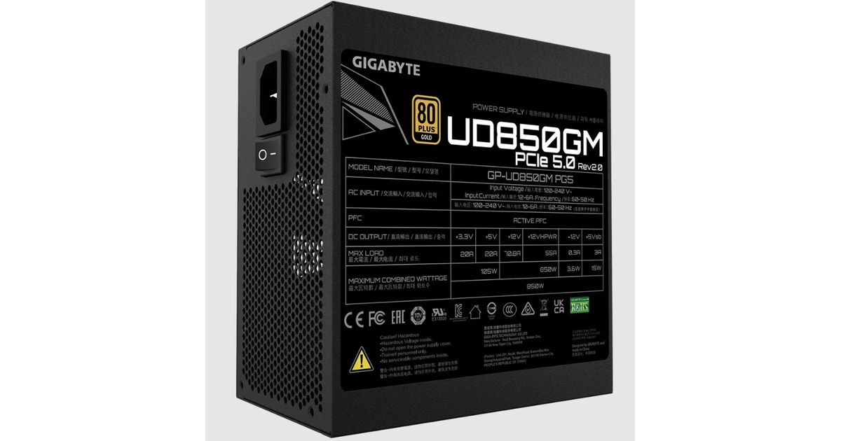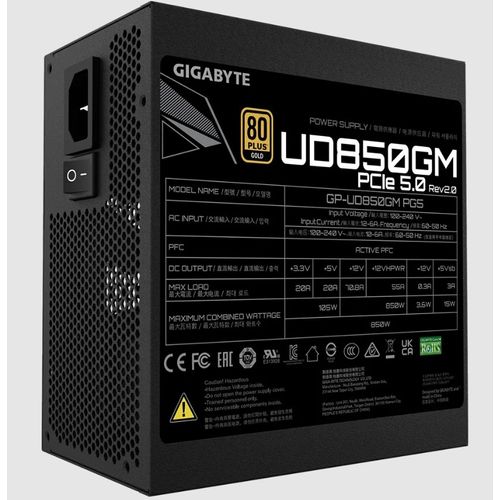 Gigabyte GP-UD850GM PG5, 850 W, 100 - 240 V, 50 - 60 Hz, 12 - 6 A, 6 A, 12 A