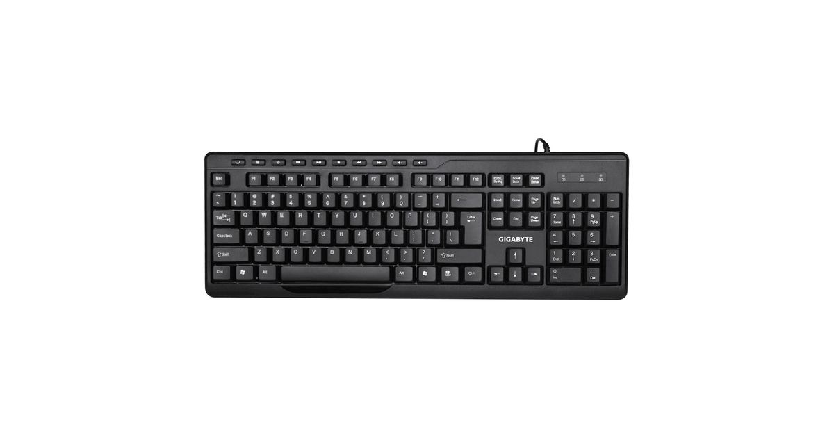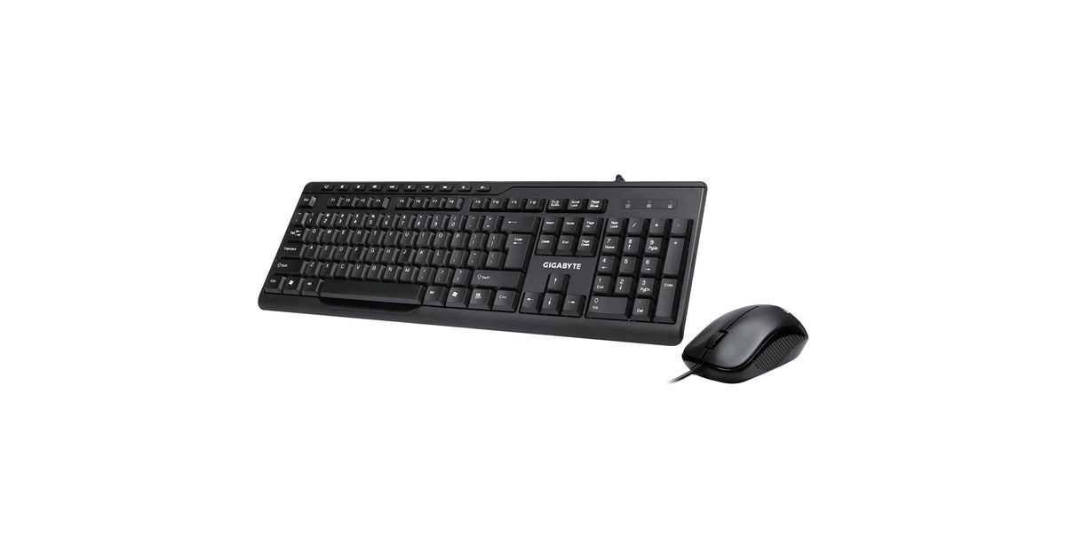 Gigabyte KM6300, Täissuuruses (100%), Juhtmega ühendatud, USB, Membraaniga klahvlüliti, Must, Hiir kaasa arvatud