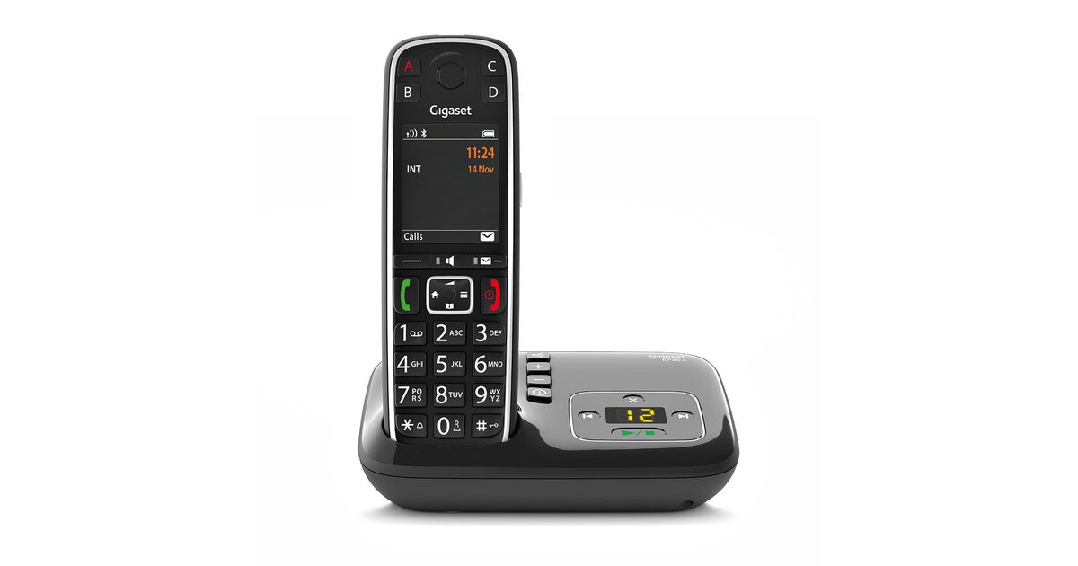 Gigaset E720A, Analoog-/DECT telefon, Juhtmeta telefonitoru, 200 sisestust, Helistaja ID, Lühisõnumiteenus (SMS), Must