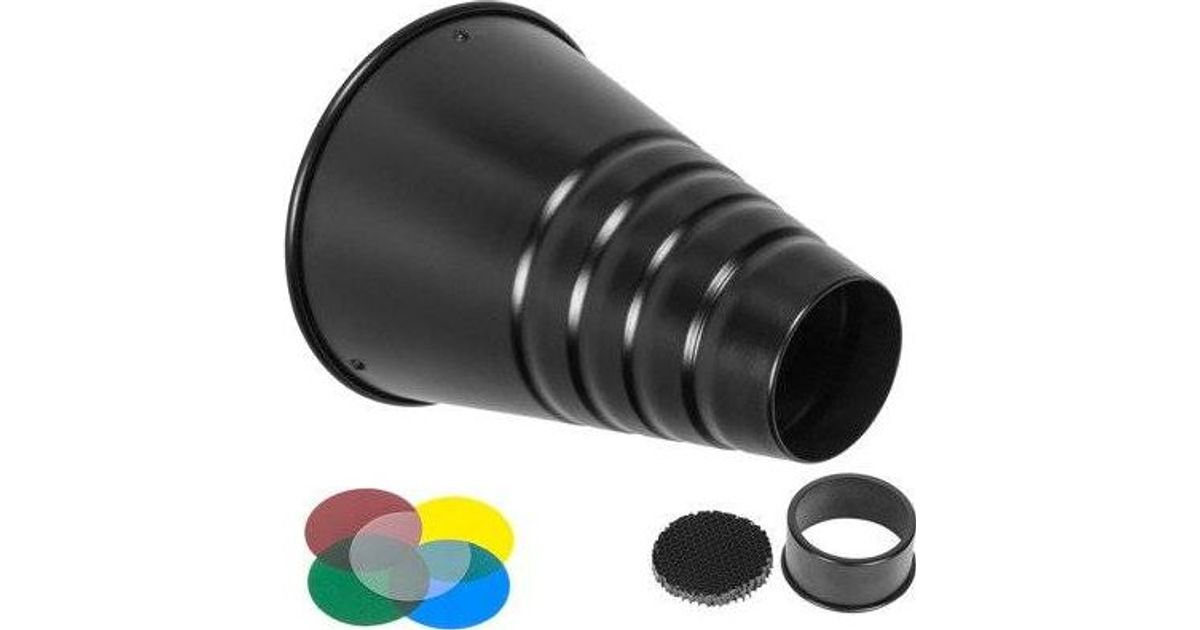GlareOne stuudiolamp GlareOne snoot kärgstruktuuriga pea + 4 filtrit