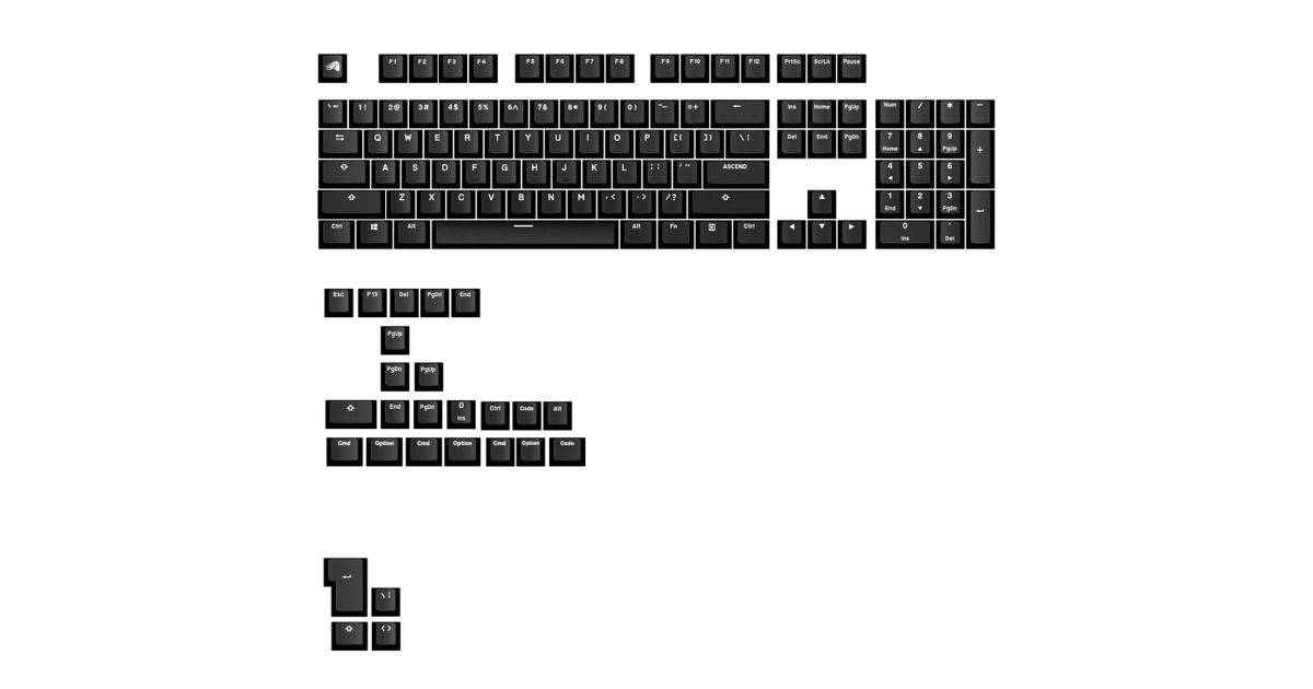 Glorious GPBT Basicsi klahvikatted, ANSI paigutus (USA), PBT, Dye-Sub – klassikaline must