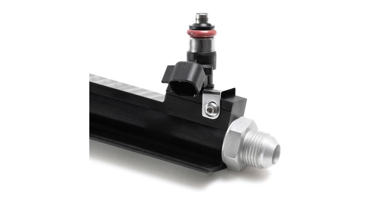 A Nuke Performance unique feature is the injector safety clips that ensure the injectors maintain a perfect sealing even during extreme fuel pressure usage. Whether during assembly, install on the engine or in the unfortunate case of an accident, the injectors will remain solidly on the rail. No fuel is spilled even if the fuel pump continues to run or there is latent pressure in the fuel system.