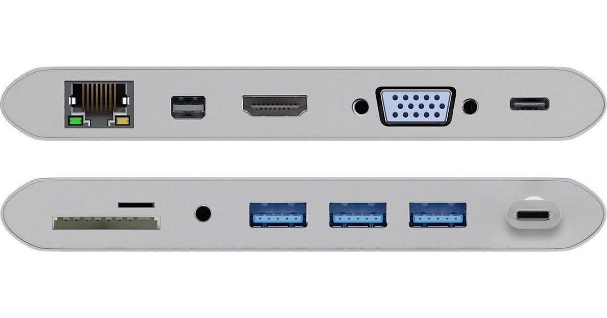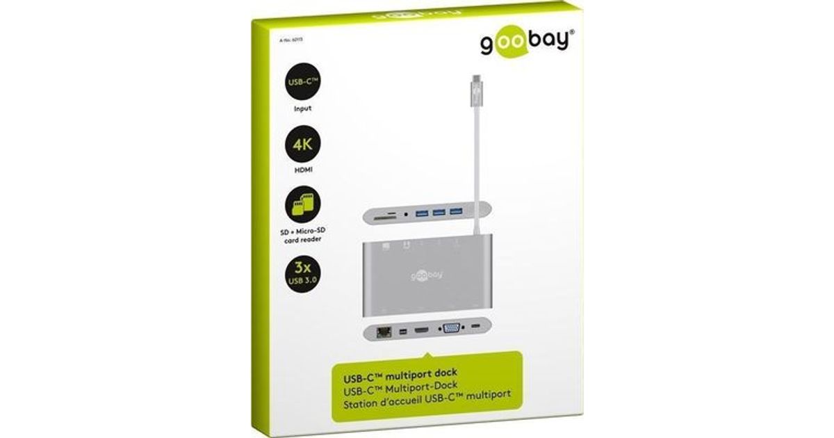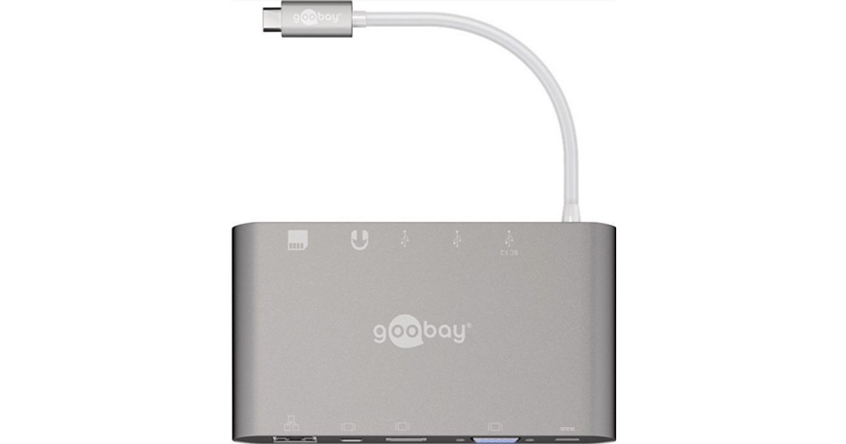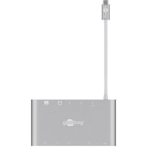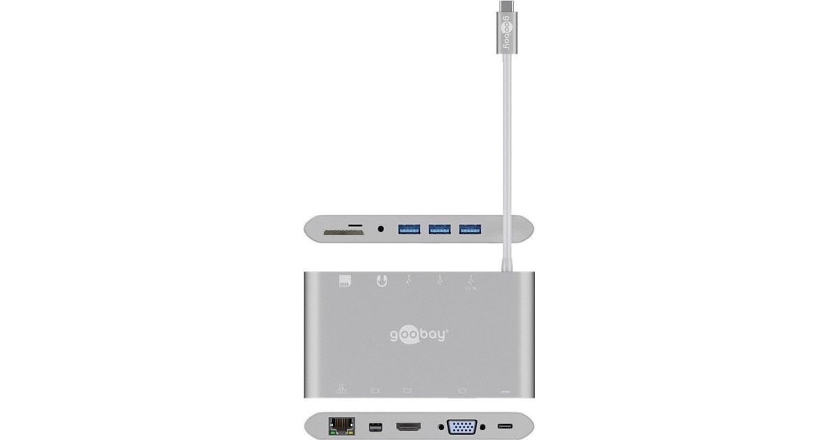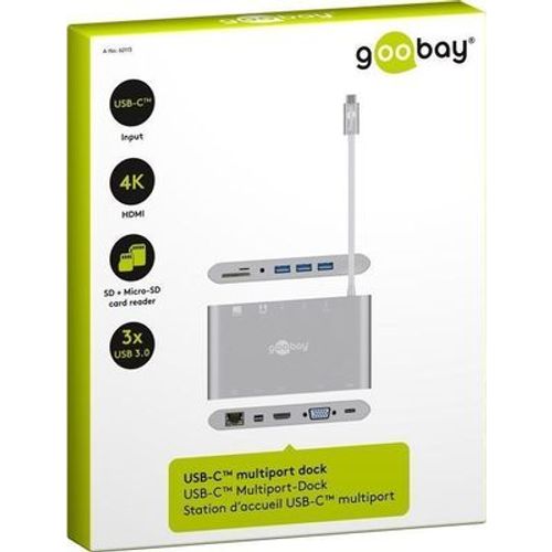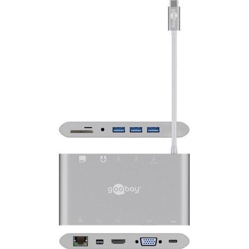 Goobay 62113, USB 3.2 Gen 1 (3.1 Gen 1) Type-C, DisplayPort, HDMI, RJ-45, USB 3.2 Gen 1 (3.1 Gen 1) Type-A, VGA, MicroSD (TransFlash), MicroSDHC, MicroSDXC, SD, SDHC, SDXC, 5000 Mbit/s, Hõbe, 0,13 m