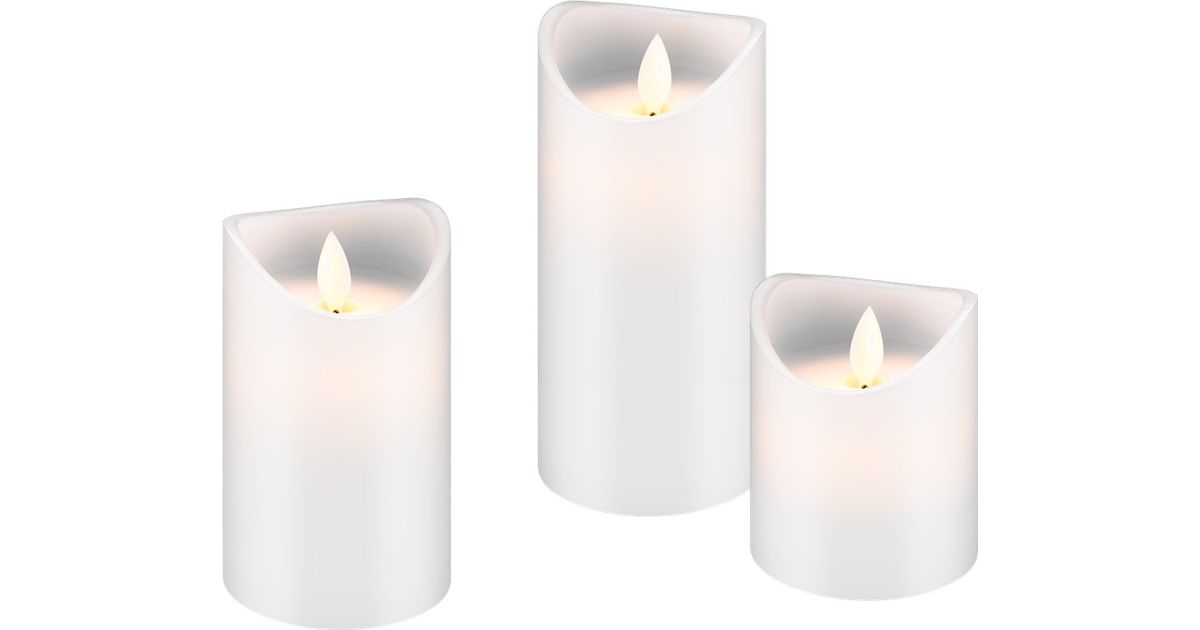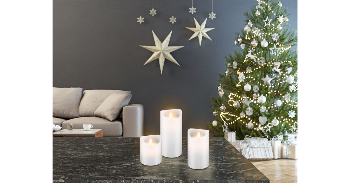 - 3 erineva suurusega LED-küünla komplekt (7,5 x 10 / 12,5 / 15 cm)