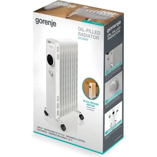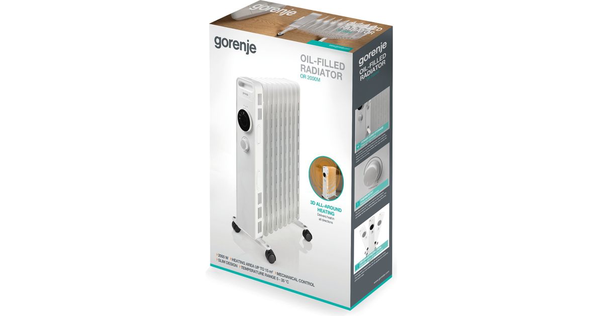 Gorenje OR2000M, Elektriline õliradiaator, Õli, Hoonesisene, Põrand, Valge, Nööbid