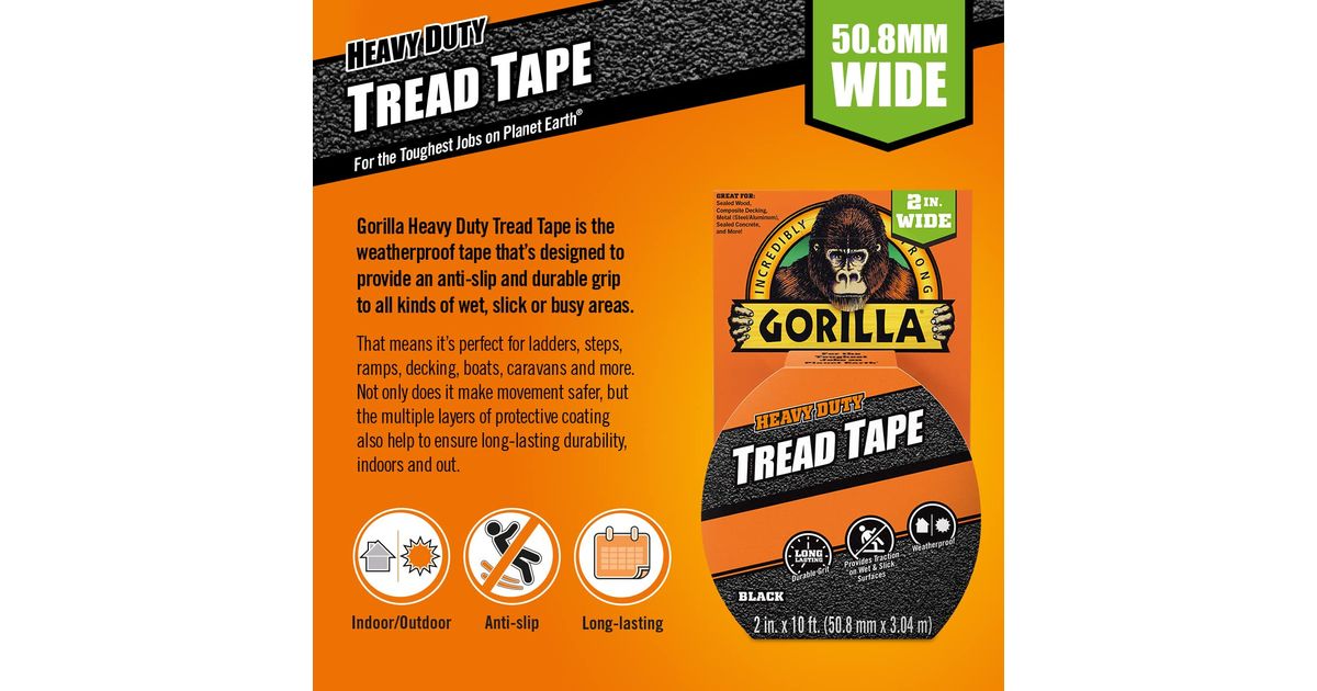Gorilla libisemisvastane teip on loodud selleks, et vältida libisemist ja kukkumist, pakkudes vastupidavat pidamist märgadel, libedatel või suure liikuvusega aladel. Mitmekihiline kate tagab vastupidava ja kauakestva püsivuse nii sise- kui ka välistingimustes kasutamiseks. Gorilla libisemisvastane teip sobib suurepäraselt redelitele, astmetele, kaldteedele, paatide, haagismajade ja muu jaoks!