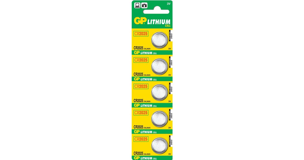 GP Batteries Lithium Cell CR2025, Ühekordne patarei, CR2025, Liitium, 3 V, 5 tk, Roostevaba teras