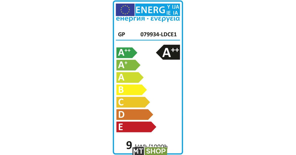 - Energy efficiency class from A++ (highest efficiency) to G (lowest efficiency):