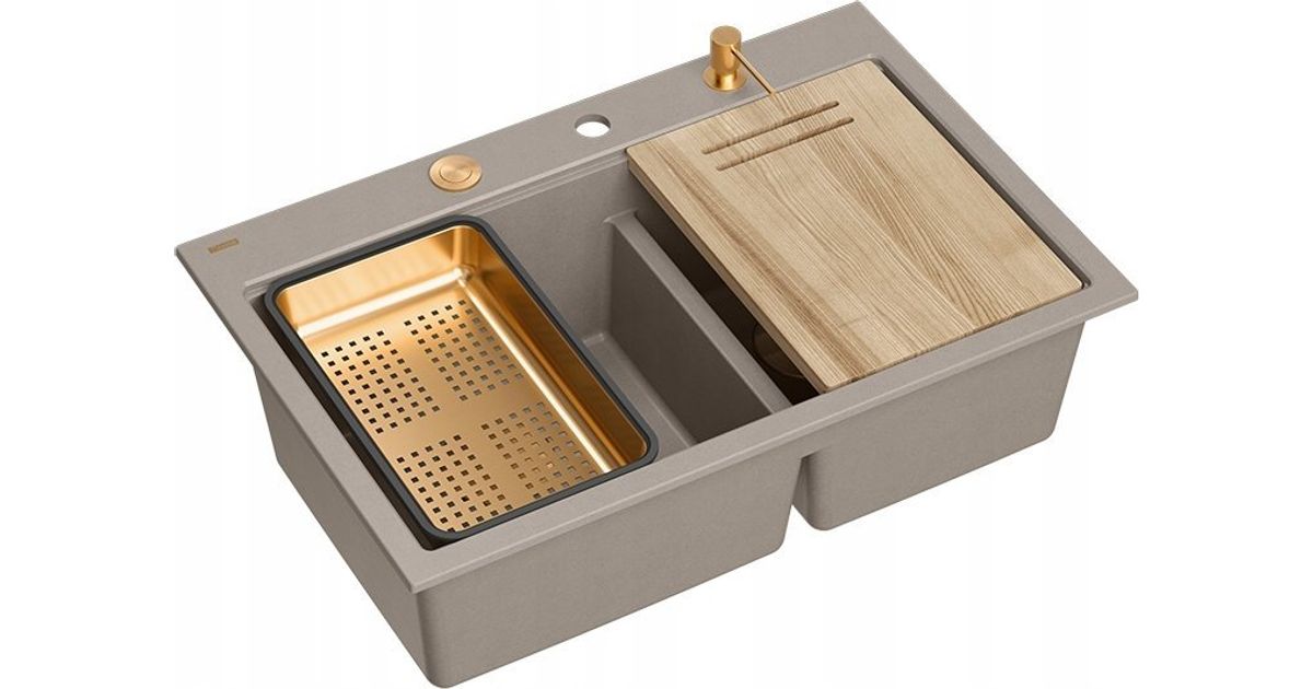 GraniteQ MARC 120 WORKSTATION valamu GraniteQ 2 kausiga valamu 760*500*235 mm pehme taupe + lükatav sifoon + dosaator + tahvel + sisetükk / vask elemendid - Valamud - Köök ja söögituba - Mööbel - Kodu - MT Shop