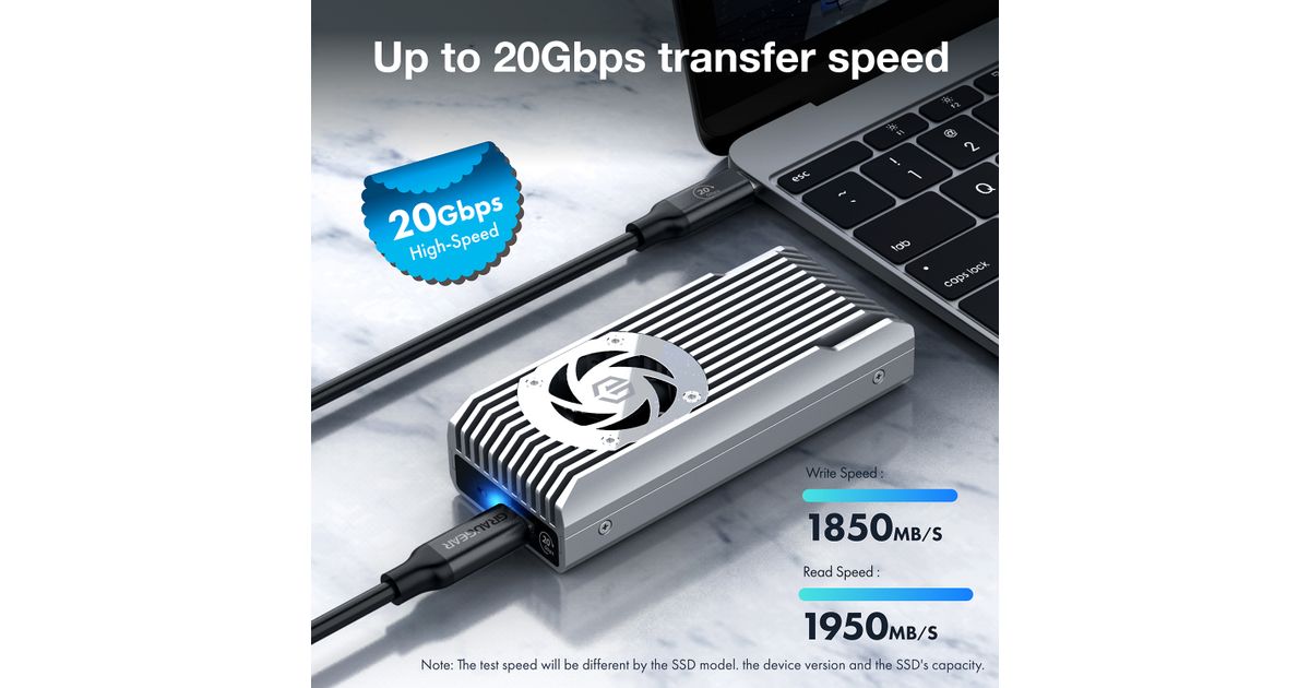 GRAUGEAR externes Gehäuse M.2 NVMe mit Lüfter 20Gbit