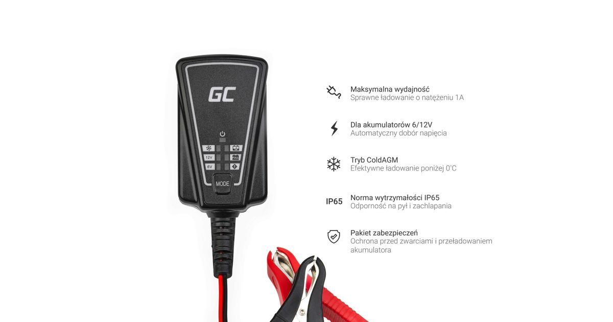 Green Cell ACAGM06, 12/6 V, 1 A, 220 - 240 V, 50 Hz, Ülekoormus, IP65
