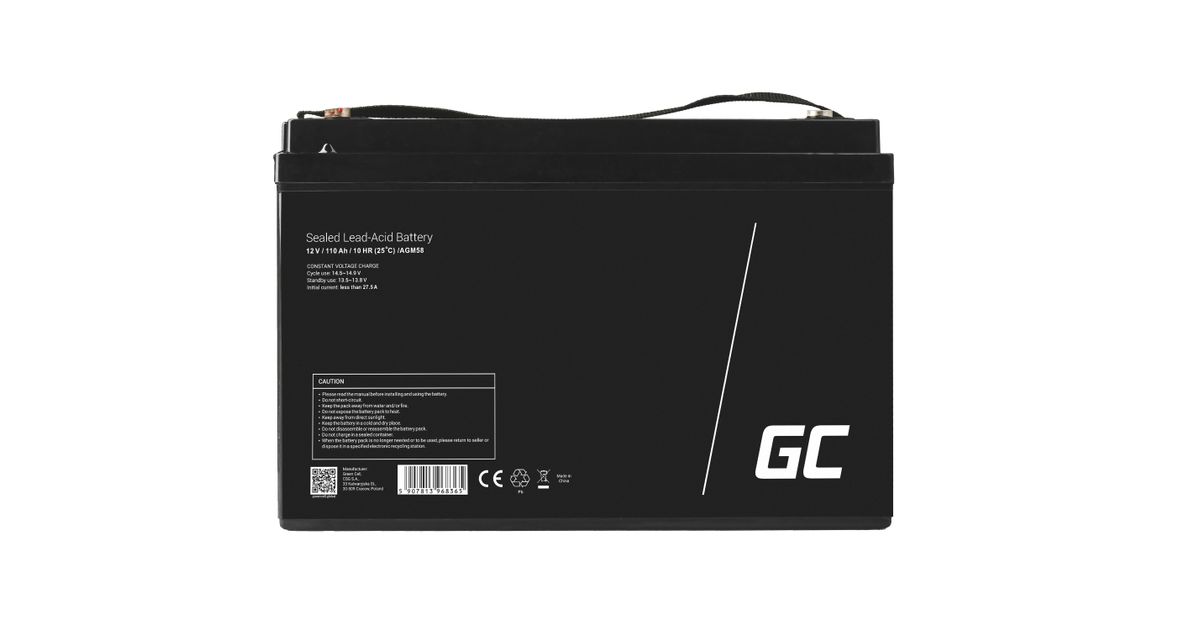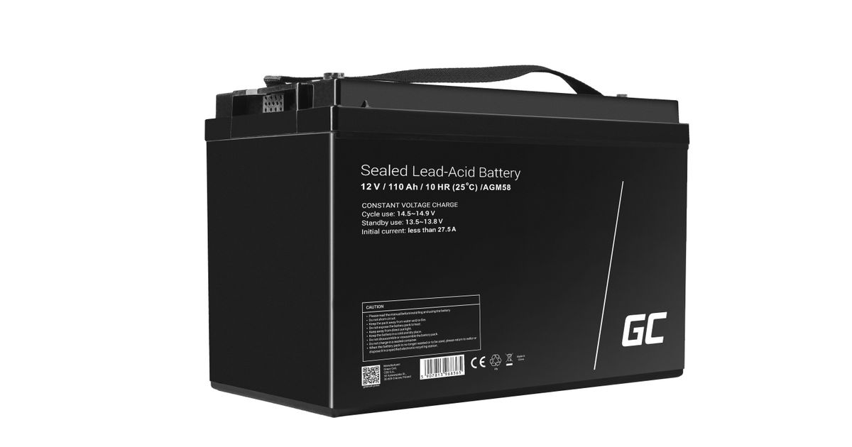 Green Cell AGM58, AGM (Absorbeeritud klaasmatt), 110 Ah, 12 V, Hooldusvaba, Must, 171 mm
