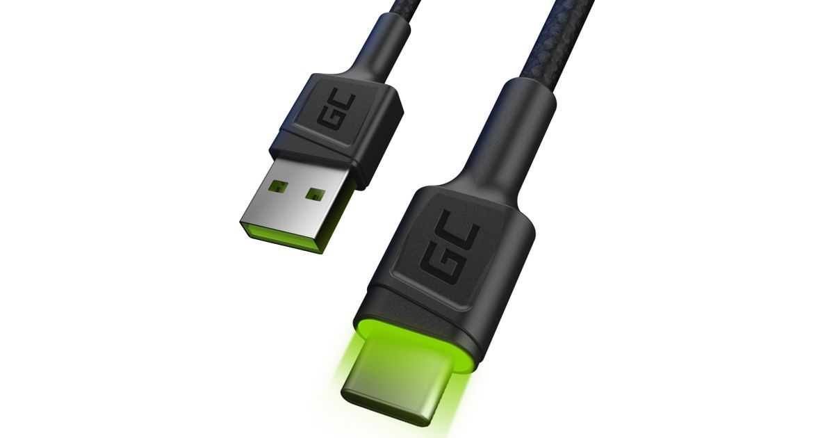 Green Cell KABGC13, 2 m, USB A, USB C, USB 2.0, 480 Mbit/s, Must
