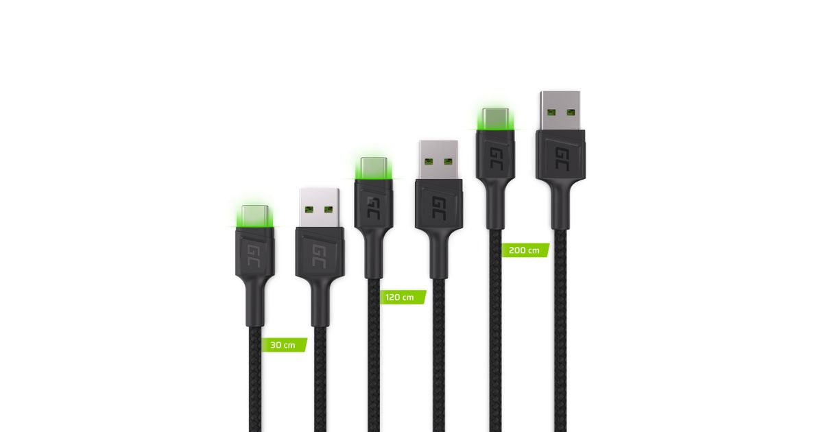 Green Cell KABGCSET01, 2 m, USB A, USB C, 480 Mbit/s, Must