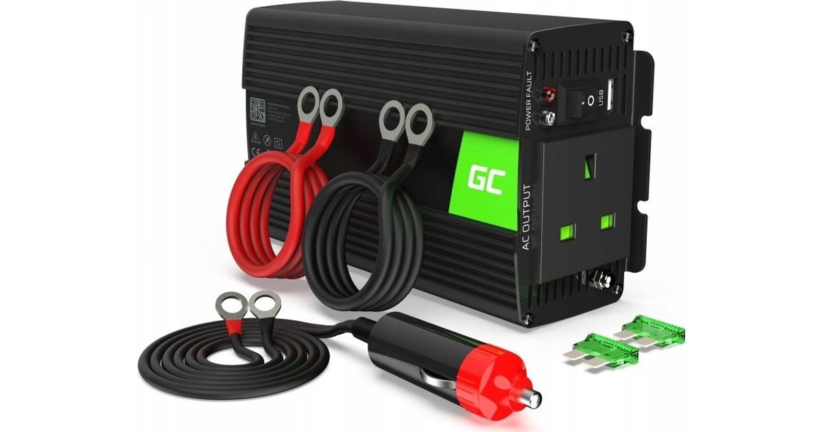 Green Cell muundur Pingemuundur Green Cell Inverter 24V kuni 230V 300W/600W Modifitseeritud siinuslaine Ühendkuningriigi pistik