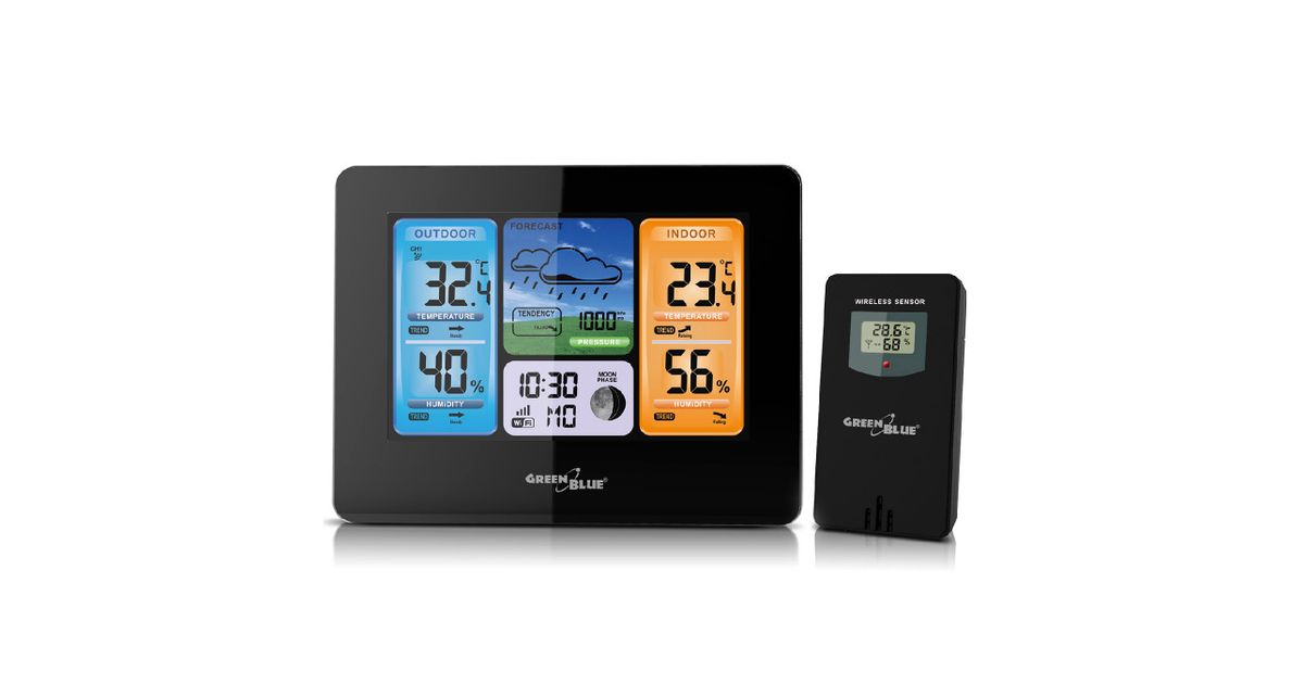 Greenblue 46003, Must, Sisehügromeeter, Sisetermomeeter, Väline hügromeeter, Välitermomeeter, Baromeeter, Hügromeeter, Termomeeter, Baromeeter, Hügromeeter, Termomeeter, 20 - 95 protsenti, 20 - 95 protsenti