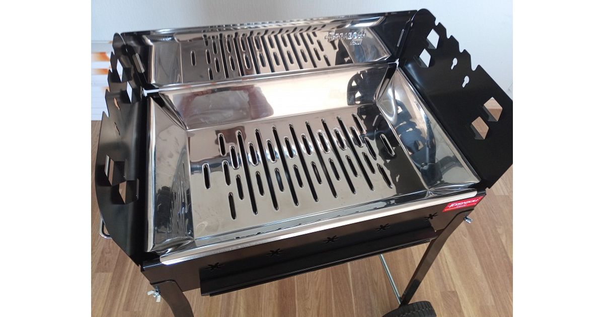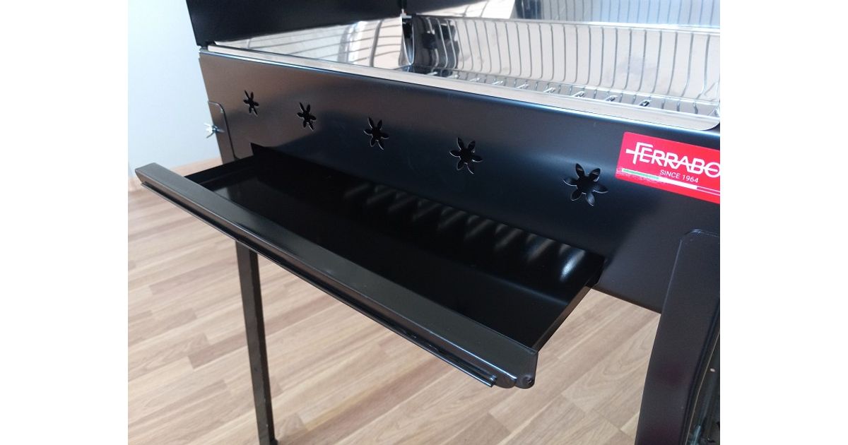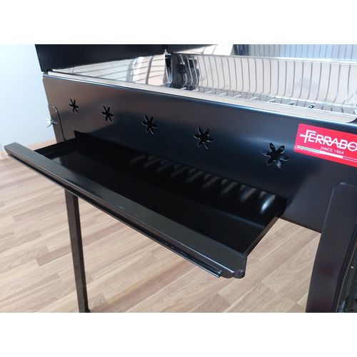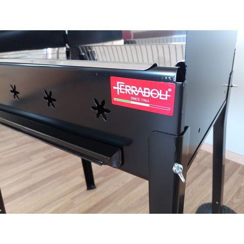 Söevann-mangaal tüüpi söegrill Itaalia tootjalt. Kandmiskäepidemed mõlemal küljel. tugevad L-profiilist jalad. Roostevabast terasest AISI 430 (toiduainetööstuses kasutatav Inox) söevann grilli põhjas. Tuhasahtel. mille abil on võimalik reguleerida ka söele liikuvat õhu hulka. Mõõdud 58x37 cm. kõrgus 84 cm. Komplekteerimisel soovitame kasutada töökindaid. Valmistatud 100% Itaalias. FERRABOLI - Itaalia BBQ seadmete tootja aastast 1964.