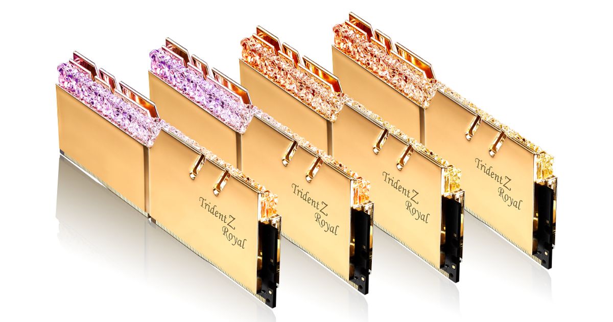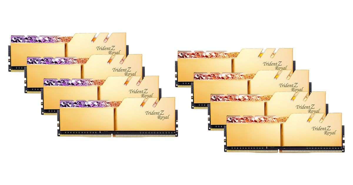 G.Skill Trident Z Royal F4-3600C14Q2-64GTRGB, 64 GB, 8 x 8 GB, DDR4, 3600 MHz, 288-pin DIMM, Kuld