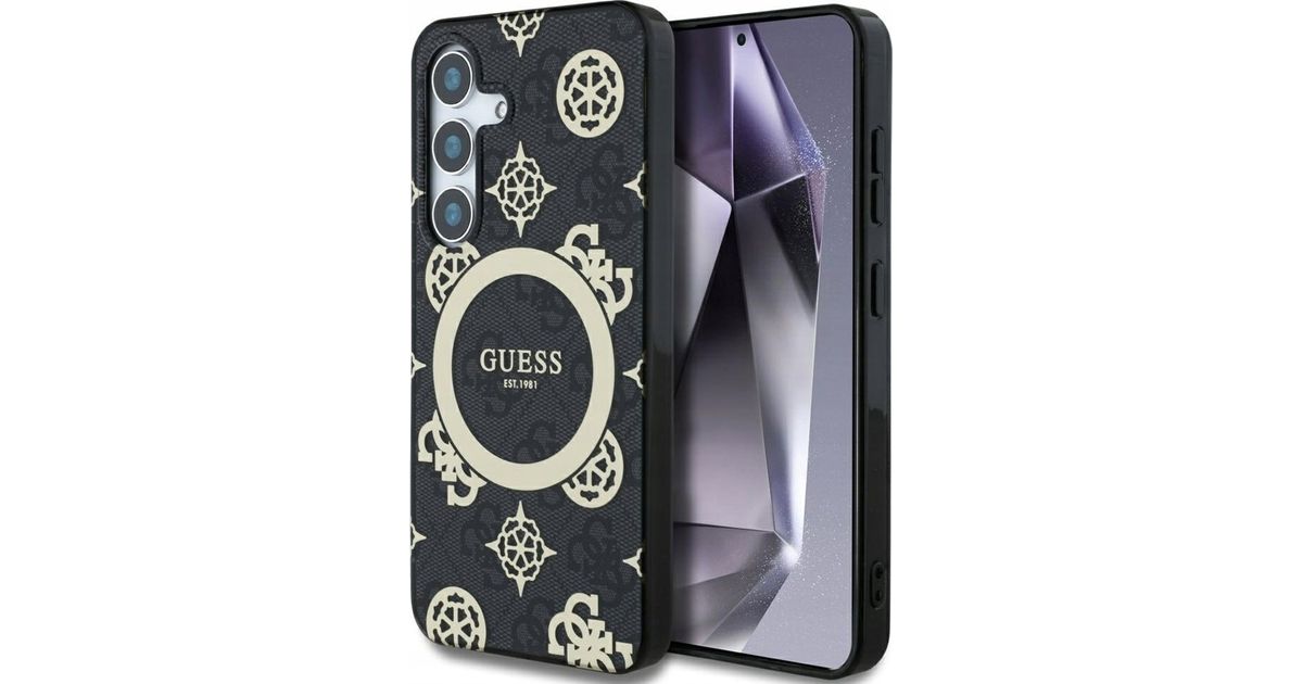 Guess 4G taustaga kullast galvaniseeritud pojengi mustriga MagSafe ümbris Samsung Galaxy S25 must