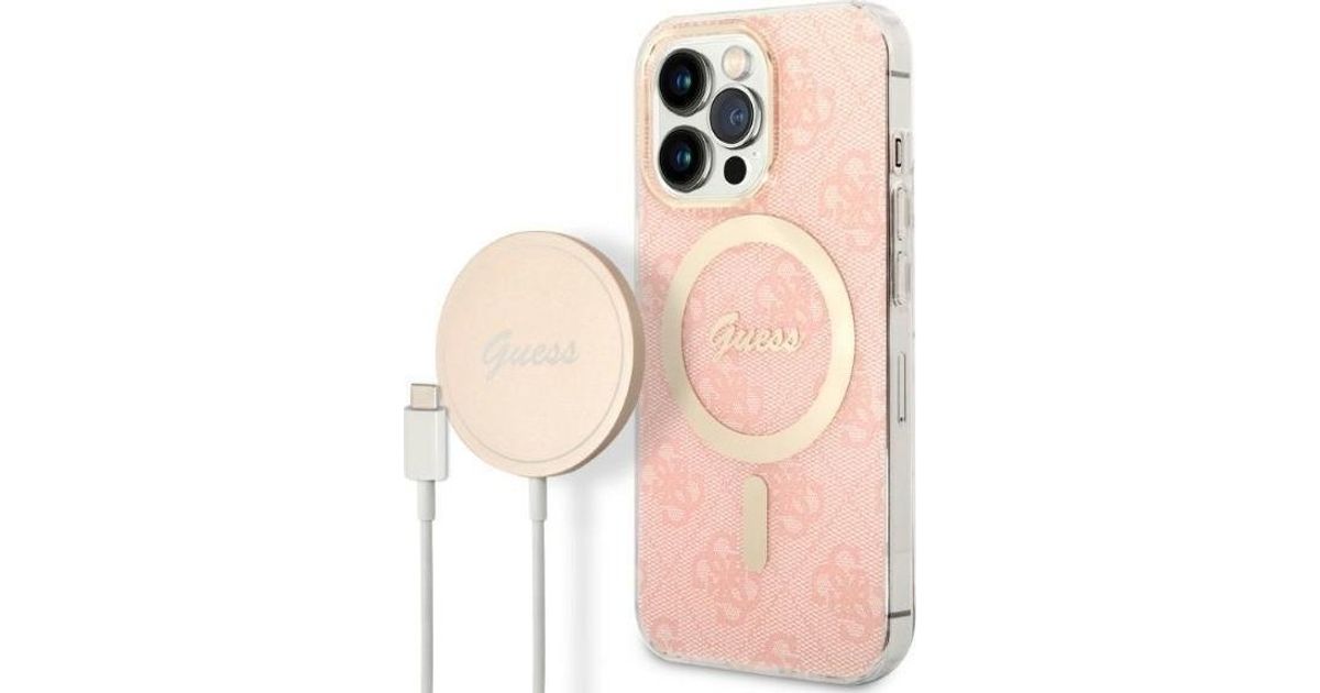 Guess charger Set Guess case + wireless charger GUBPP13LH4EACSP Apple iPhone 13 Pro pink/pink hard case 4G Print MagSafe