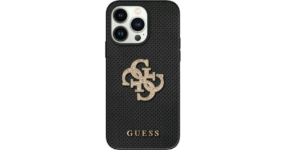 Guess Guess GUHCP15SPSP4LGK iPhone 15 6,1-tolline must/must kõvaümbris, nahast perforeeritud 4G glitterlogo