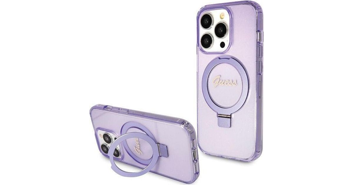 Guess Guess GUHMP13LHRSGSU iPhone 13 Pro / 13 6,1-tolline lilla/lilla kõvaümbris Rõngasalus Script Glitter MagSafe