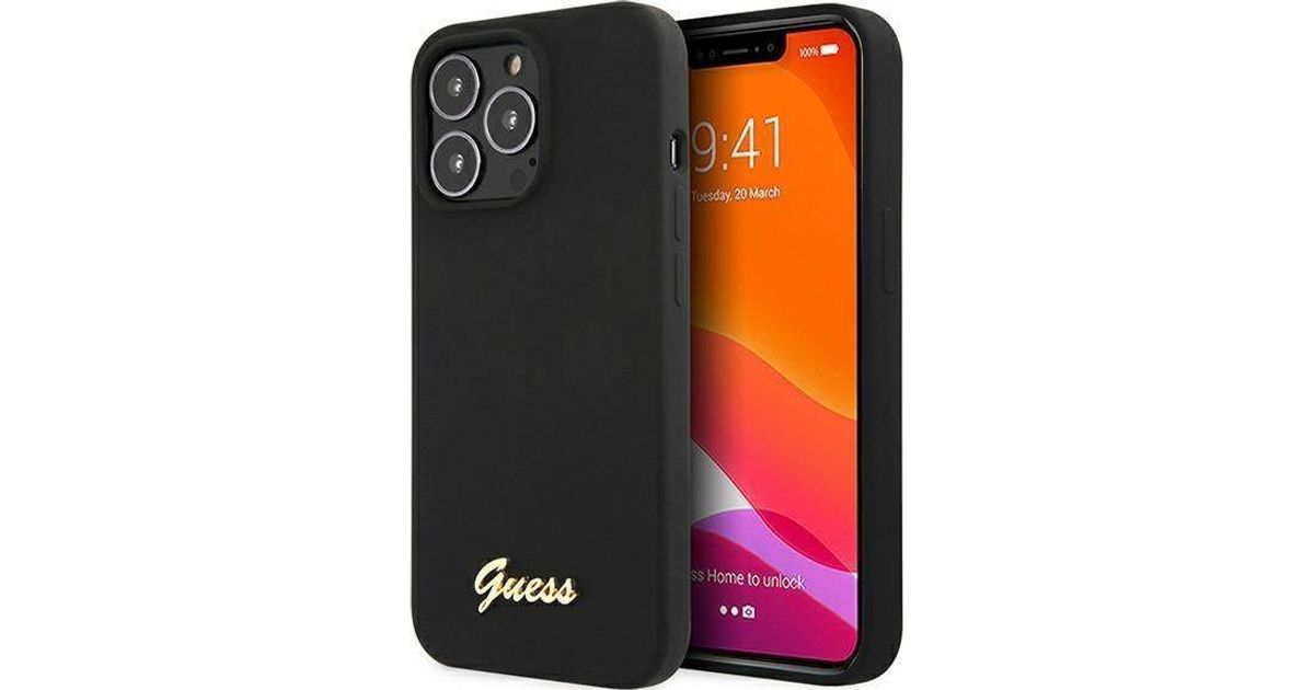 Guess Guess GUHMP13XLSLMGBK iPhone 13 Pro Max 6,7-tolline must/must kõvaümbris Silicone Script Gold Logo