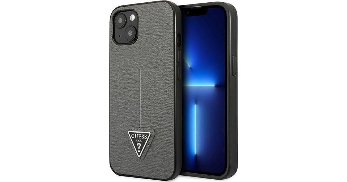 Guess Guess ümbris iPhone 14 6,1-tollise hõbedase/hõbedase kõva ümbrisega SaffianoTriangle Logo
