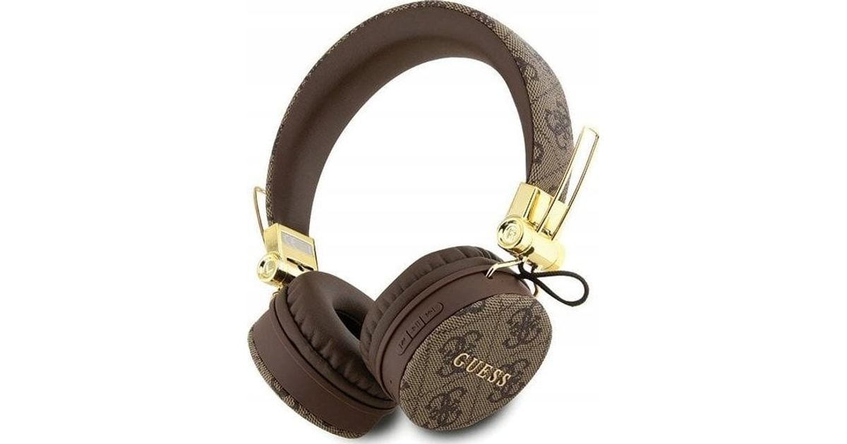 GUESS Wireless Bluetooth Headset 4G Metal Logo PU Leather Brown, GUBH704GEMK