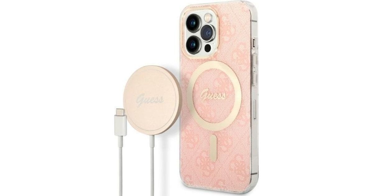 Guessi laadija komplekt Guess ümbris + juhtmevaba laadija GUBPP13XH4EACSP Apple iPhone 13 Pro Max roosa/roosa kõva ümbris 4G Prindi MagSafe