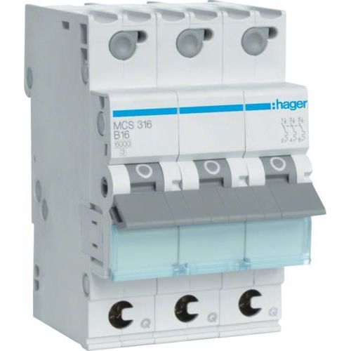 Hager MCS316, 3P, 50 - 60 Hz, 16 A, 52,5 mm, 70 mm, 83,4 mm