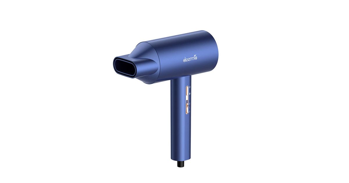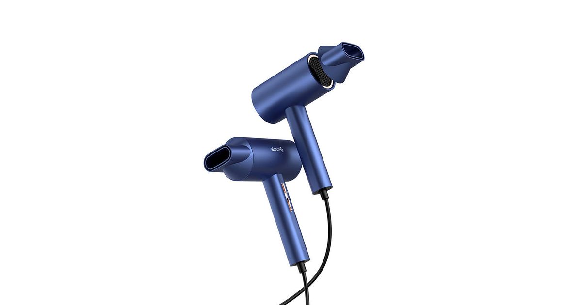 The Deerma CF15W hair dryer has an ergonomic handle that fits comfortably in your hand and a 1.65m cord that allows you to move freely. Moreover, its carefully thought out design prevents your hair from getting tangled up in it. The device also looks really good and is resistant to wear and tear. The blue color and rose gold details give it a delightfully elegant character.