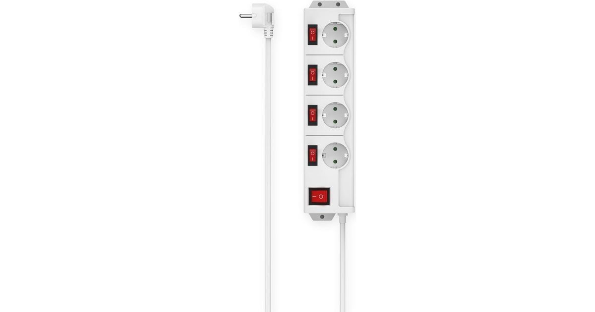 Hama 00223121, 1,4 m, 4 vahelduvvoolu kontakt, Hoonesisene, Tüüp F, Nurga all, Valge