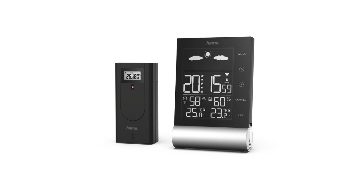 Hama Black Line M, Must, Sisehügromeeter, Sisetermomeeter, Väline hügromeeter, Välitermomeeter, Patarei