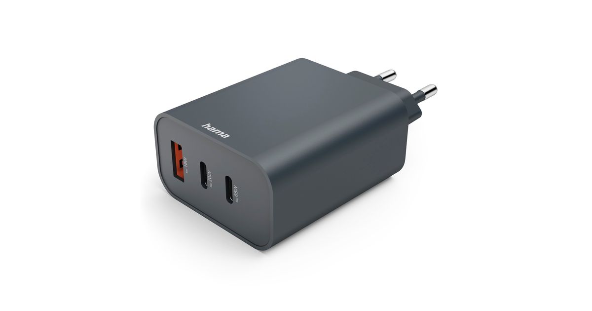 Hama Schnellladegerät, 2x USB-C, 1x USB-A, PD, 65 W, Anthrazit (00086445)