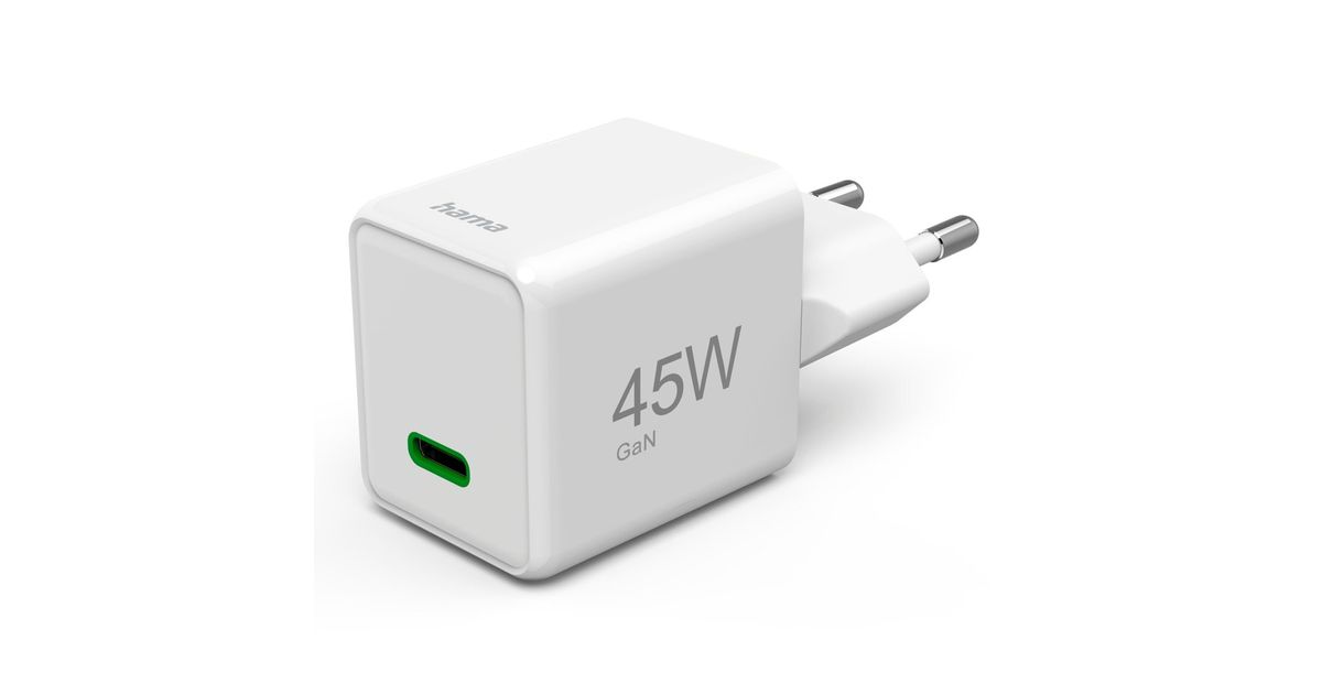 Hama Schnellladegerät, USB-C, PD/QC/GaN, Super-Mini-Charger, 45 W, Weiß (00201983)