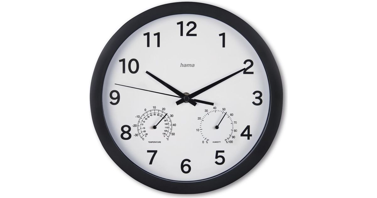 Hama Wanduhr Malta O 25 cm mit Thermo-/Hygrometer geräuscharm Schwarz (00185868)